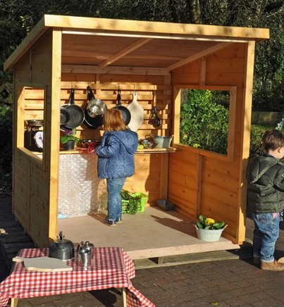 Enhance your outdoor area with our Home Corner Outdoor Shelter. This multifunctional hut includes a counter and trellis back, providing endless opportunities for imaginative play. Whether used as a mud kitchen, writing center, or detective agency, let your child's creativity and skills flourish. Add separate accessories to customize and watch them thrive. Measurements: H160cm x W160cm x D154cm.
