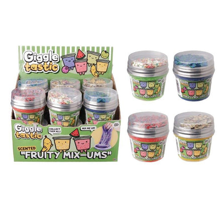 Fruity Mix-ums are a variety of colourful slime pots that are perfect for hands-on fun! Featuring four cute fruit-designs to mix into the slime, this playful set encourages fun and imagination. Easy to mix, Fruity Mix-ums are ideal for sensory and creative play providing endless opportunities of entertainment. Suitable for ages 3 years and up.