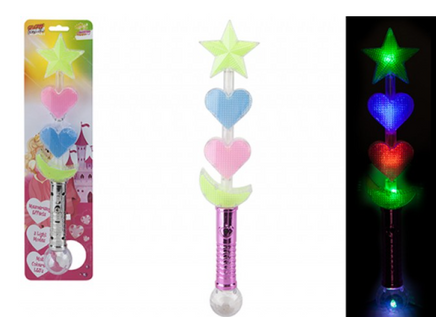 Decorative light up flashing wand featuring star, heart and moon shapes.