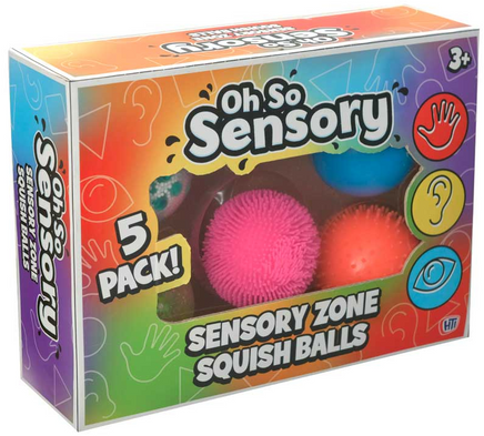 The ‘Oh So Sensory’ Sensory Squish Ball Pack contains 3 sensory, squish balls. Squish, bounce and play with the assorted colours and textures.