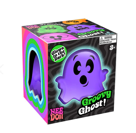 Spooky meets squishy with the NeeDoh Groovy Ghost! These ghastly creatures glow in the dark, so switch the lights off to see their frightful facial expressions illuminate the room. The Groovy Ghost comes in four vibrant colours and six assorted styles (chosen at random).