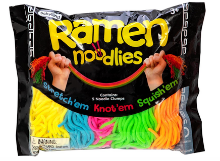 Schylling’s Noodlies is a colourful fidget toy that satisfies the fun of playing with food - without the mess. Pull, knot, stretch, squeeze and mush the crimped textured elastic ramen noodles for lots of fun.
