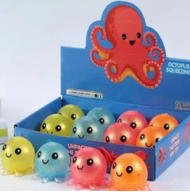 Discover endless fun with the Squeeze Glitter Octopus! The squeezable toy provides tactile stimulation, while the glitter adds a touch of visual appeal. Perfect for children, this toy encourages sensory exploration and play.