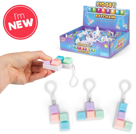 Introducing the Fidget Keyboard Keychain - compact fidget fun right at your fingertips! These cool keychain clickers bring great value and endless amusement wherever you go. With four stylish designs to choose from, they're perfect for satisfying your fidget cravings on the move. Click, press, and enjoy the satisfying sensation with the Fidget Keyboard Keychain!