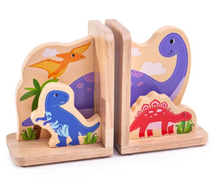 Add a touch of colour to any bedroom, nursery or playroom with these beautiful Bookends (Dinosaurs). These bookends are sure to liven up any room or play area and keep everything neat and tidy! Crafted from wood, they are super sturdy! Features a Pterodactly, T-Rex and Diplodocus. Not a toy. Made from high quality, responsibly sourced materials. Conforms to current European safety standards. Age 3+ years. Turn on screen reader support