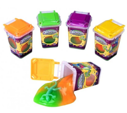 Each trash can includes a surprise character hidden in a bed of putty! Characters include Frogs, Lizards, Snakes, Rats, Sharks, and Centipedes. There are 10 to find - can you collect them all?