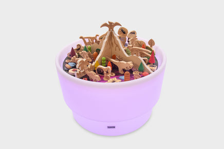 A combination set containing our colour-changing Sensory Mood Discovery Table with Forest Discovery Play Mat, Jurassic Discovery Dividers and imaginative play accessories.