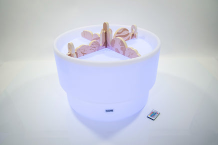 A combination set containing our colour-changing Sensory Mood Discovery Table with Space Discovery Play Mat, Space Discovery Dividers and imaginative play accessories.