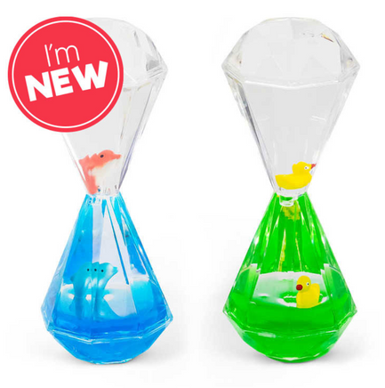 Liquid-filled hour glass containing a pair of bobbing penguins. Flip it over to make the blue liquid slowly cascade from the top section to the bottom, slowly causing one penguin to rise as the other sinks. Each end of the hourglass has a jewel-like shape, giving it an ornate appearance that's different to most toys and novelties of this nature. The effect is almost hypnotic to watch, making it a fun desk toy that's perfect for home or office use.