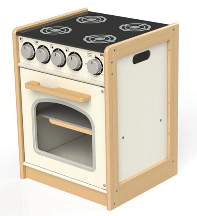 The Education Cooker from Tidlo is a reliable wooden appliance for young aspiring chefs. Featuring realistic clicking dials, detailed hob, and a removable oven tray, this cooker is a fantastic addition to any play kitchen. It includes a view hole in the door, allowing children to monitor their food and prevent burning. With carry handles for portability, it's a practical tool for teaching kitchen safety and various cooking techniques. Children can also tap into their creativity and imagination as they play with this educational toy. It can be combined with other Tidlo wooden kitchen appliances to create a complete play kitchen. Assembly by an adult is required. Made from responsibly sourced materials, this product conforms to current European safety standards.