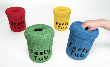 • Set of 4 brightly coloured Feely Tubs with soft and tactile washable covers.