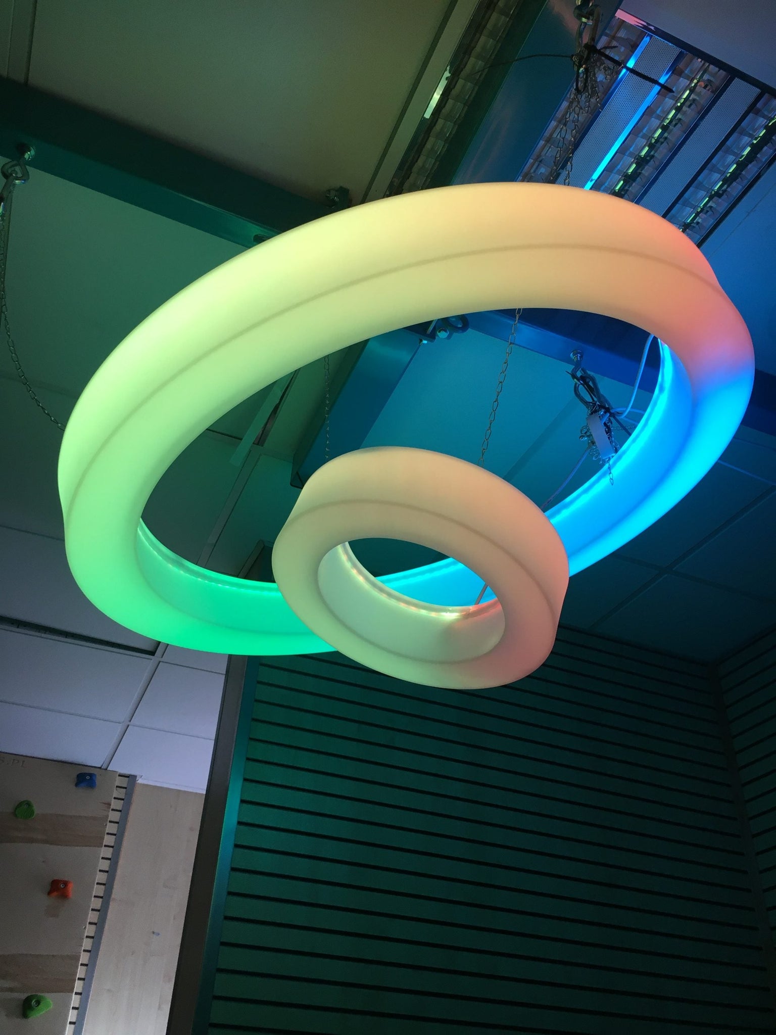This large formidable circular ring has a variety of colour changing sequences to light up and brighten up any ceiling. Just lie back and watch it change or grab the remote and choose the mode to suit your mood. Captivating for any age group but an incredible finishing piece to any sensory room.