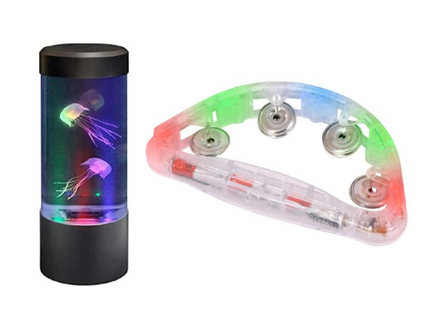 The Flashing Tambourines are powered by bright leds which flash when switched on. A simple On/Off switch ensures the batteries dont run out and can be used over and over again. Sensory light & sound experience and Tough & ergonomic plastic