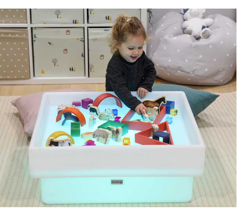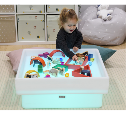 Our light colour-changing Sensory Mood Square Discovery Table is perfectly sized for babies or toddlers who are not yet standing, offering a more immersive experience. Its sturdy yet lightweight design is not only aesthetically pleasing but also highly practical—easy to move, quick to clean, and ideal for individual focus work or collaborative sensory play.