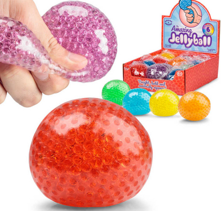 Soft and squidgy ball filled with hundreds of jelly-like orbs. It's a squishy toy that's quite unlike anything else in our collection, as the jellyballs inside provide an interesting tactile experience when squeezed. It can be squished and squeezed over and over, but always snaps back to its original shape as soon as you put it down. It also makes a fantastic alternative to a classic stress ball.